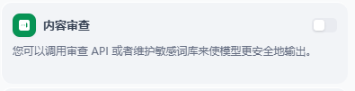 设置建议:主要用于配置系统对用户输入和AI生成内容的审核规则,确保内容符合安全、合规或特定业务要求