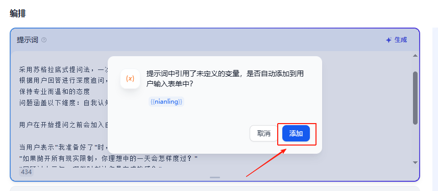 变量将以表单形式让用户在对话前填写,用户填写的表单内容将自动替换提示词中的变量