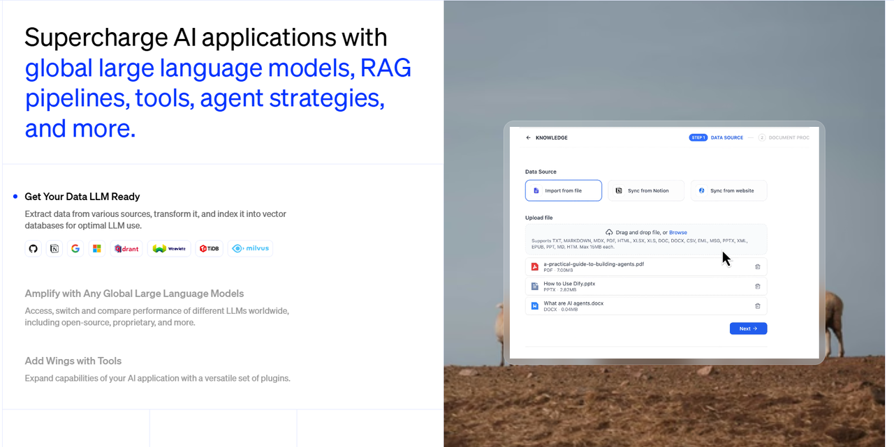 只需上传文档,Dify就能让AI"活学活用"你的私有知识: