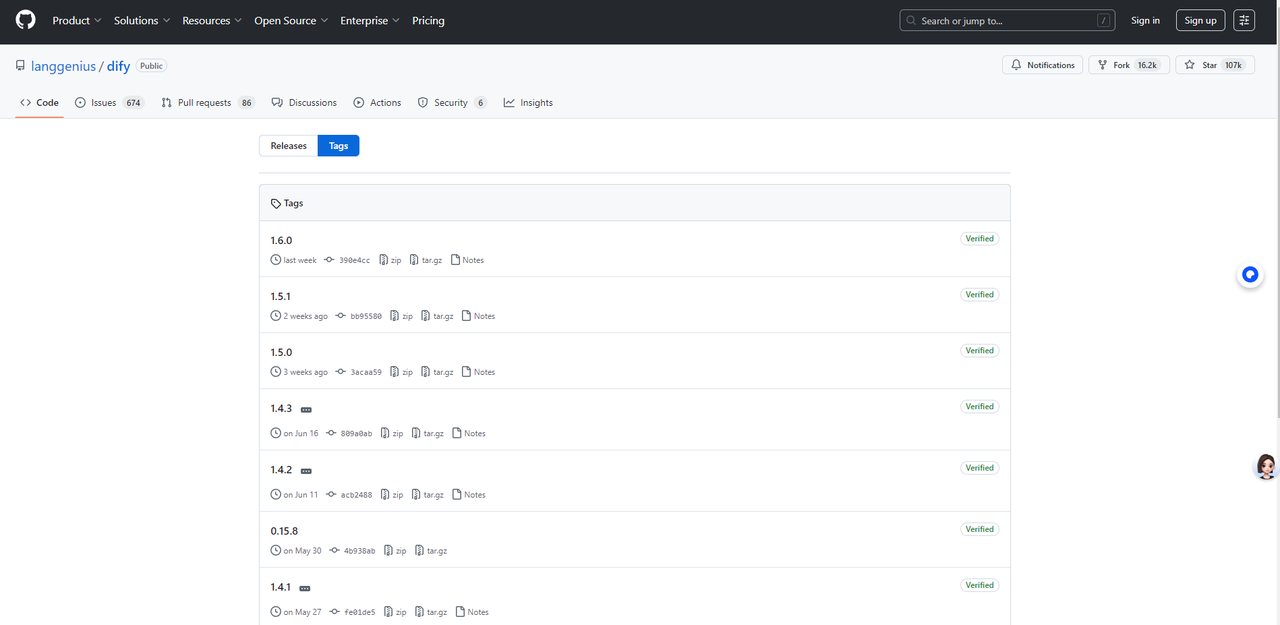 Dify下载地址:https://github.com/langgenius/dify/tags