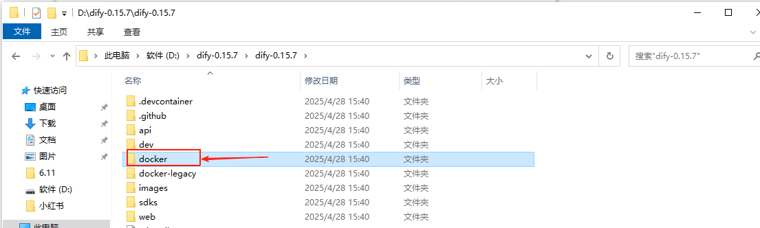 找到docker目录,点击进入