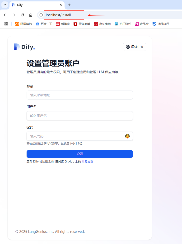 启动成功后在浏览器的地址栏中输入 http://localhost/install 就可以访问了
