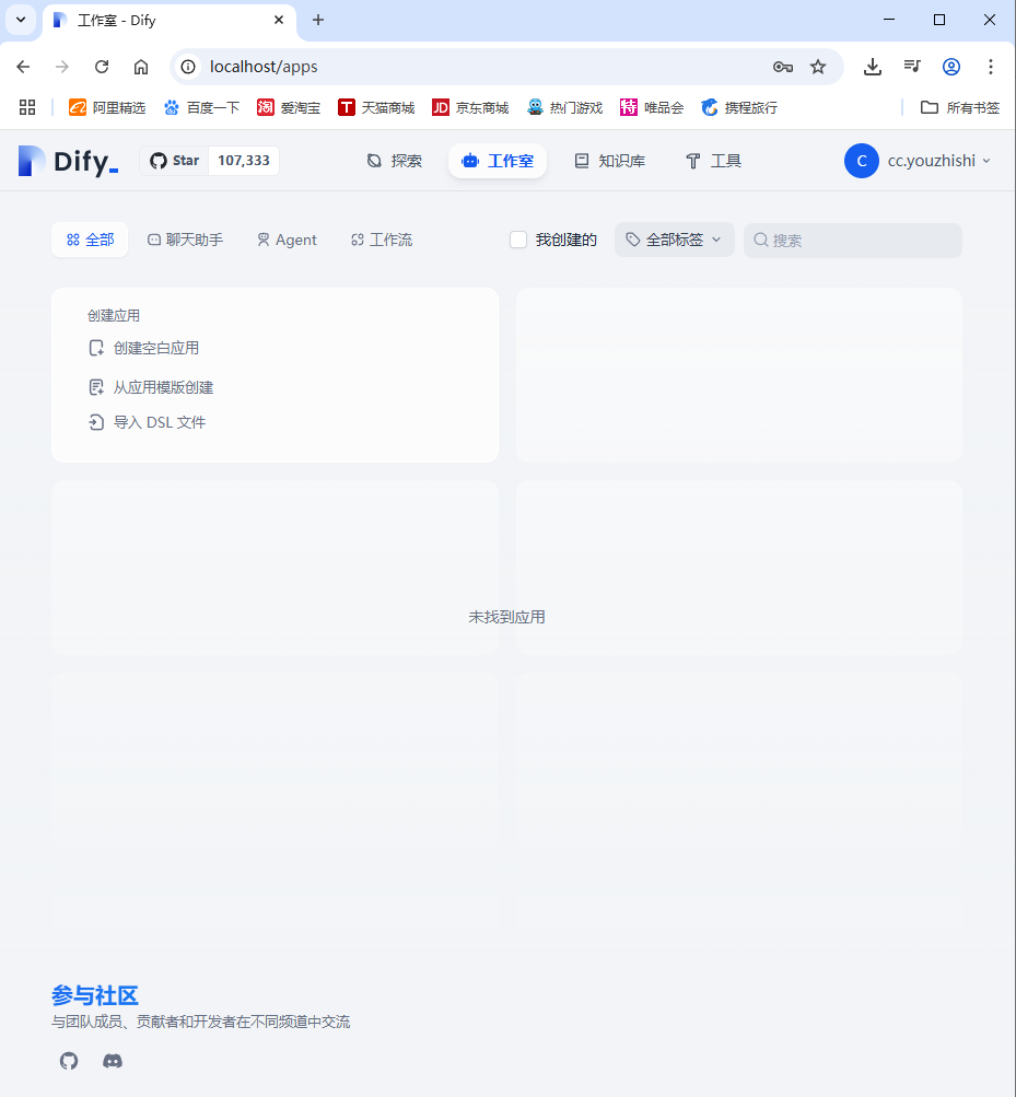 接下来就进入到Dify操作的主界面了,说明Dify已经安装成功并且可以使用了