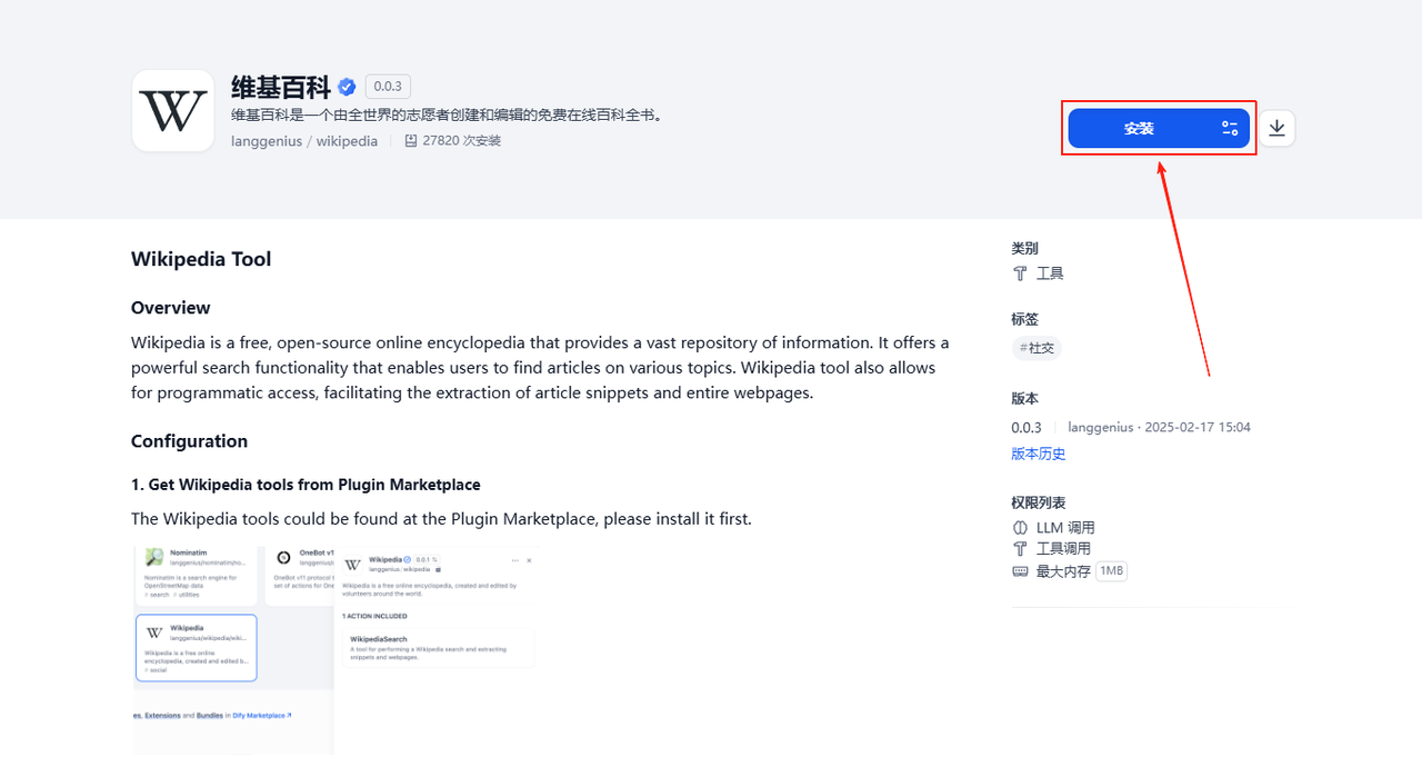 Wikipedia(维基百科)就是一个很好的选择——它几乎涵盖了全球的城市、景点、美食等信息,而且更新快、权威性高。只要在 Dify 里添加 Wikipedia 工具,你的助手就能用它来补充详尽的目的地知识,让回答更专业、更有深度