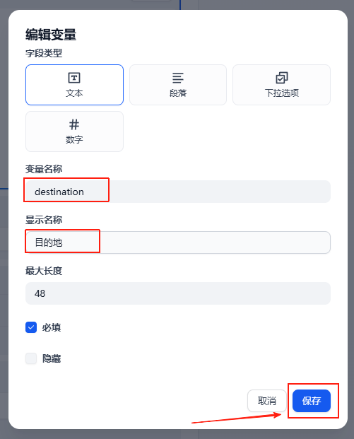 再添加旅行天数day和budget预算,添加的都是文本类型,就不再一一做展示了