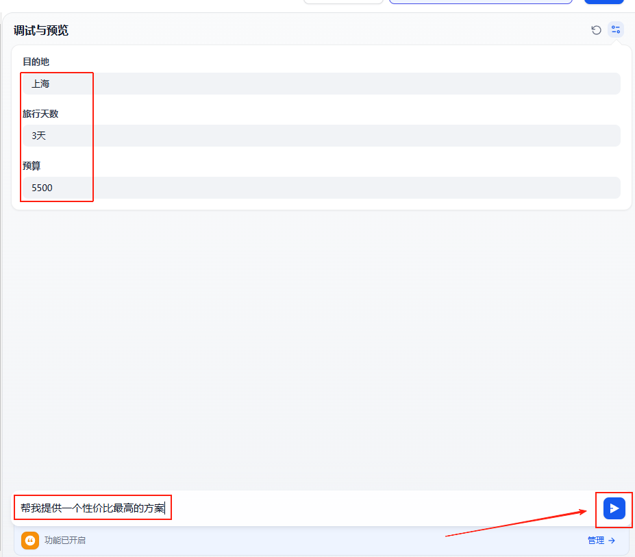 发布成功之后,我们直接在测试界面进行Agent的测试