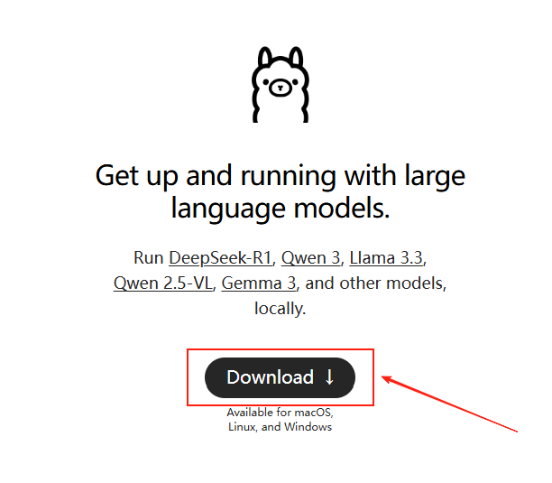 手动部署最简单的方式就是使用Ollama,这是一个帮助你部署和运行大模型的工具。官网如下: