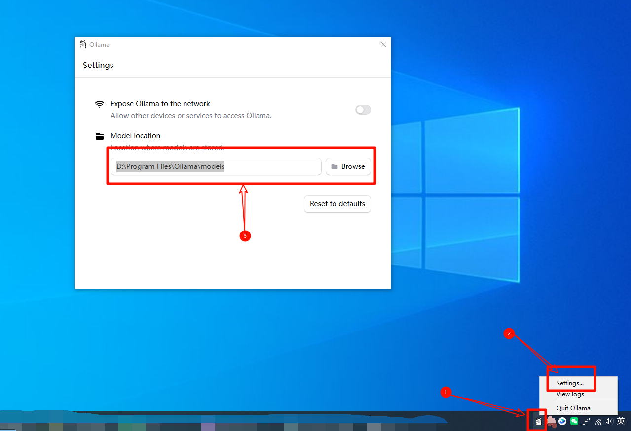 但是有同事的电脑根本无法打开Ollama软件的界面,所以通过了系统变量去更改模型的安装目录,大家根据自己的情况选择一种方式进行安装目录的更改即可