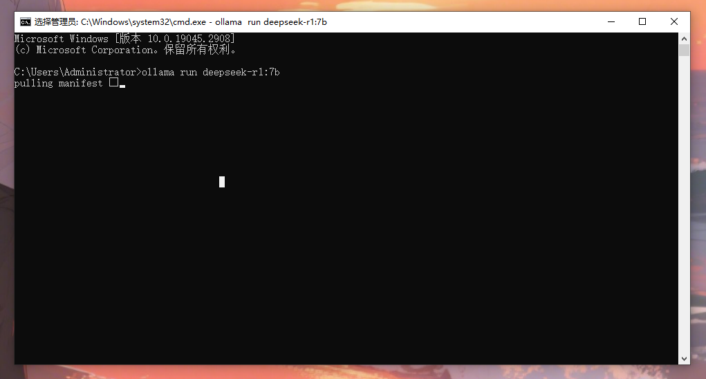 首次运行命令需要下载模型,根据模型大小不同下载时长在5分钟~1小时不等,请耐心等待下载完成。这个Ollama很多时候都不太稳定,如果大家这里一直卡着没动的话,按Ctrl+C重新运行一次,就正常了