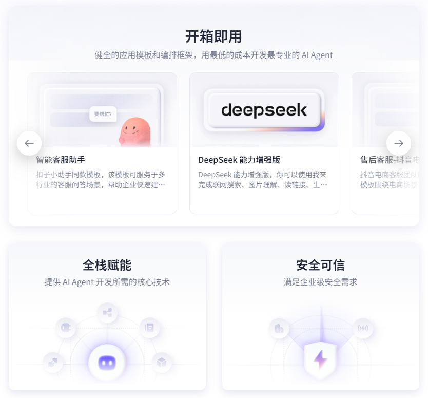 | 开箱即用 | 提供可视化工作流、预置模板,支持拖拽式编排AI能力(如智能客服、知识库对接) | 聚焦对话机器人,基础功能可用,但复杂功能依赖插件 |